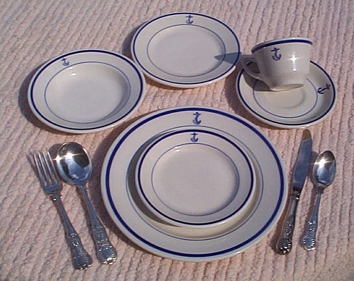 Ironically, today individual ship commanders and wardroom officers of the U.S. Navy now purchase this antique Navy silverware and china from The Pirate's Lair for use aboard present-day warships! Sailors today can now use and enjoy the same dinnerware and silverware used by their Naval bretheren of long ago!