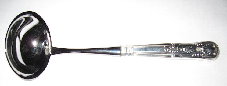 U.S. Naval silverware is a handsome industrial-grade antique silver plate strong enough to be used as everyday dinnerware yet elegant enough for formal military Navy dining-in occasions! It has a beautiful sparkling Kings Pattern or Rose Pattern, on the top front of the handle is an engraved nautical Naval insignia (or "top mark"), such as the most popular and traditional U.S. Navy fouled anchor. Some of the silverware instead of a fouled anchor has an Eagle for Navy Captains, or with stars for Admirals, a nautical square-knot for Junior Officers. On the top back handle is engraved the letters USN.